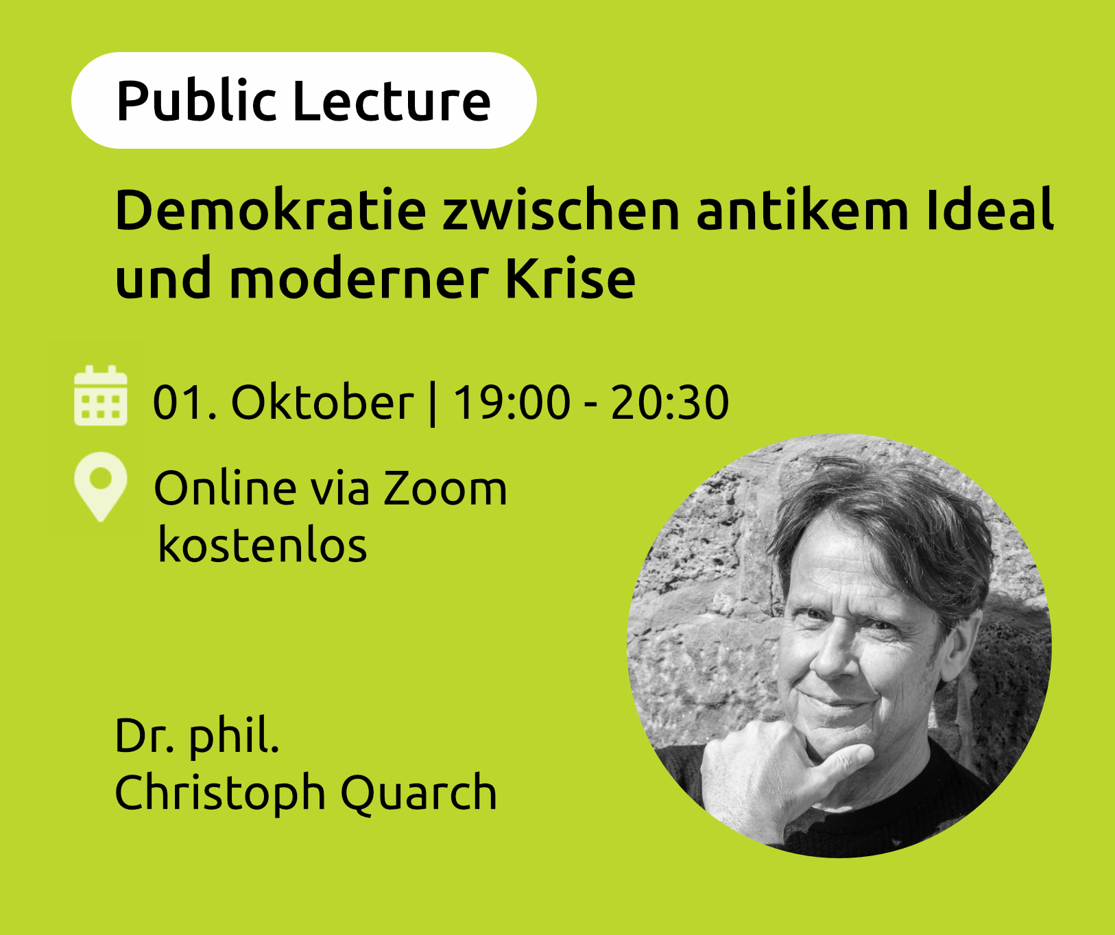 In der ersten Public Lecture der School of Participation schlägt Christoph Quarch die Brücke von der antiken Demokratie zu den Herausforderungen unserer Gegenwart.
